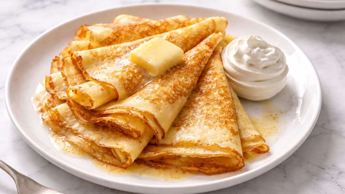 Store cooled crepes stacked with parchment (optional) in an airtight container in the fridge for up to 3 days. Reheat in a lightly buttered skillet over low heat for 20–30 seconds per side, or warm gently in the microwave in short bursts (they heat fast, so don’t overdo it).