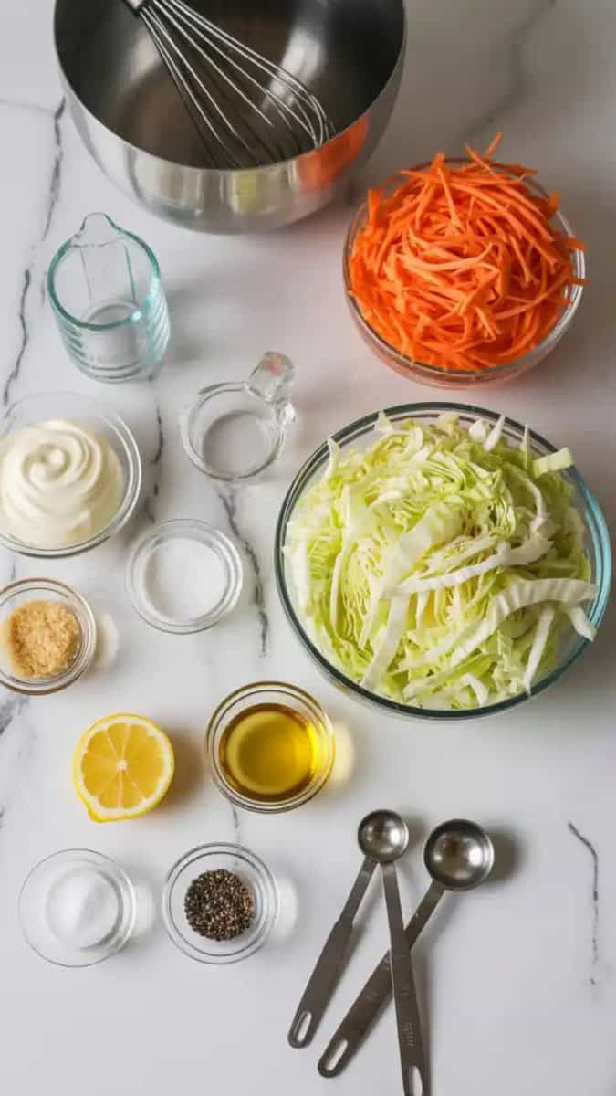 - Shredded cabbage: The base of the slaw, offering crisp texture and fresh crunch.