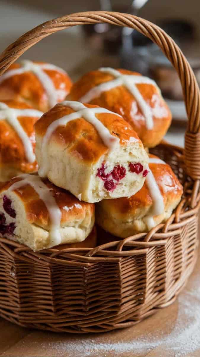 Cranberry Hot Cross Buns (Soft & Glazed Easter Classic)