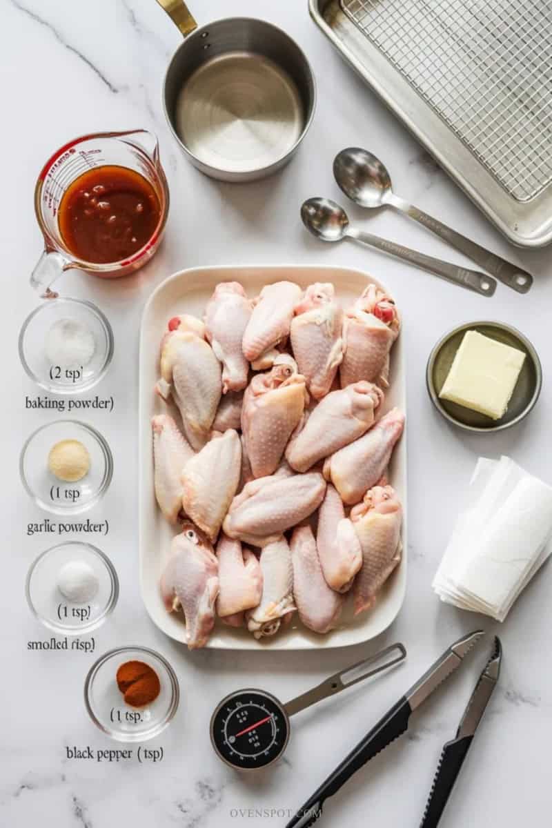 • Chicken wings: 2 lb about 900 g, split into flats and drumettes, tips removed